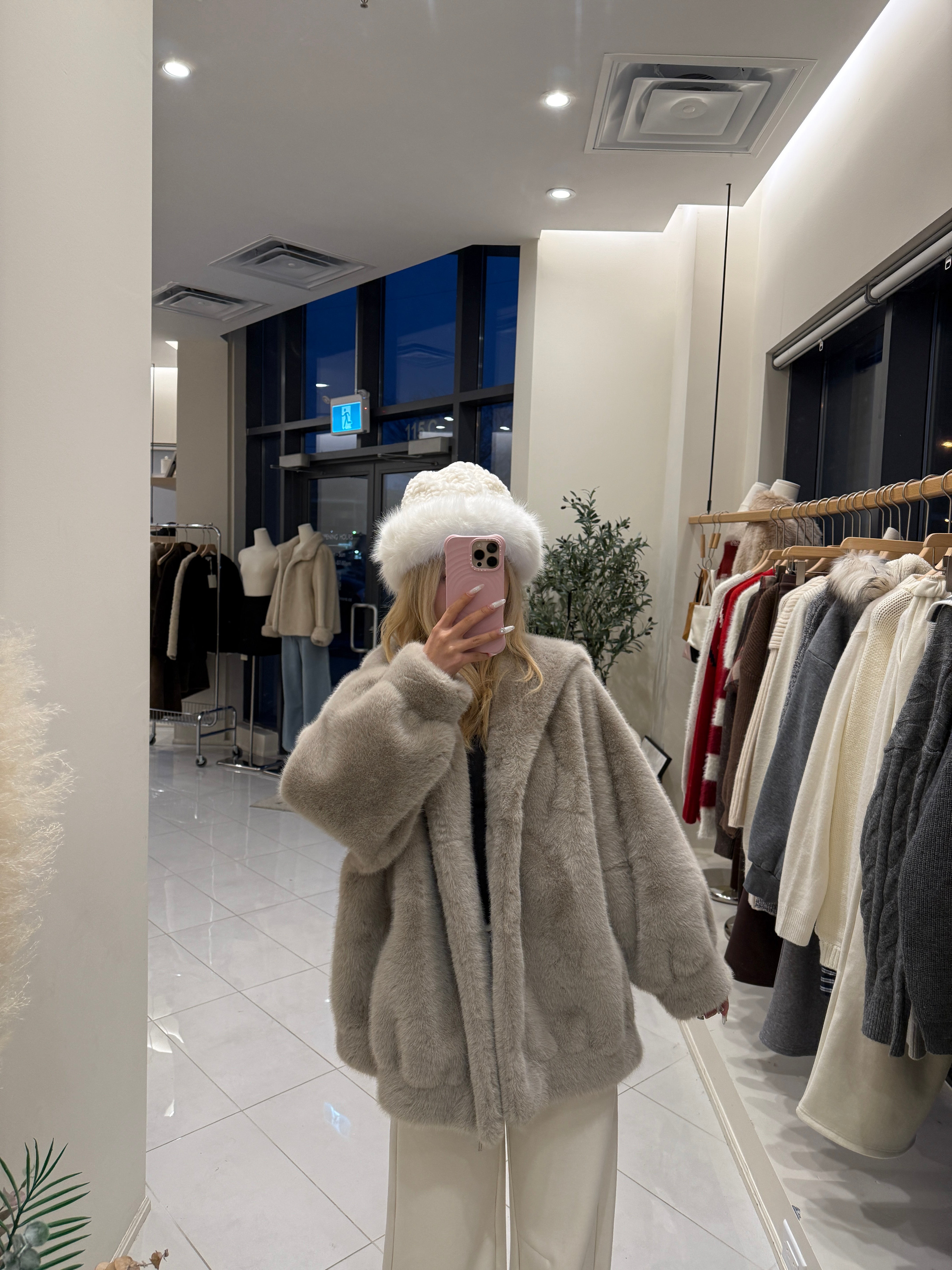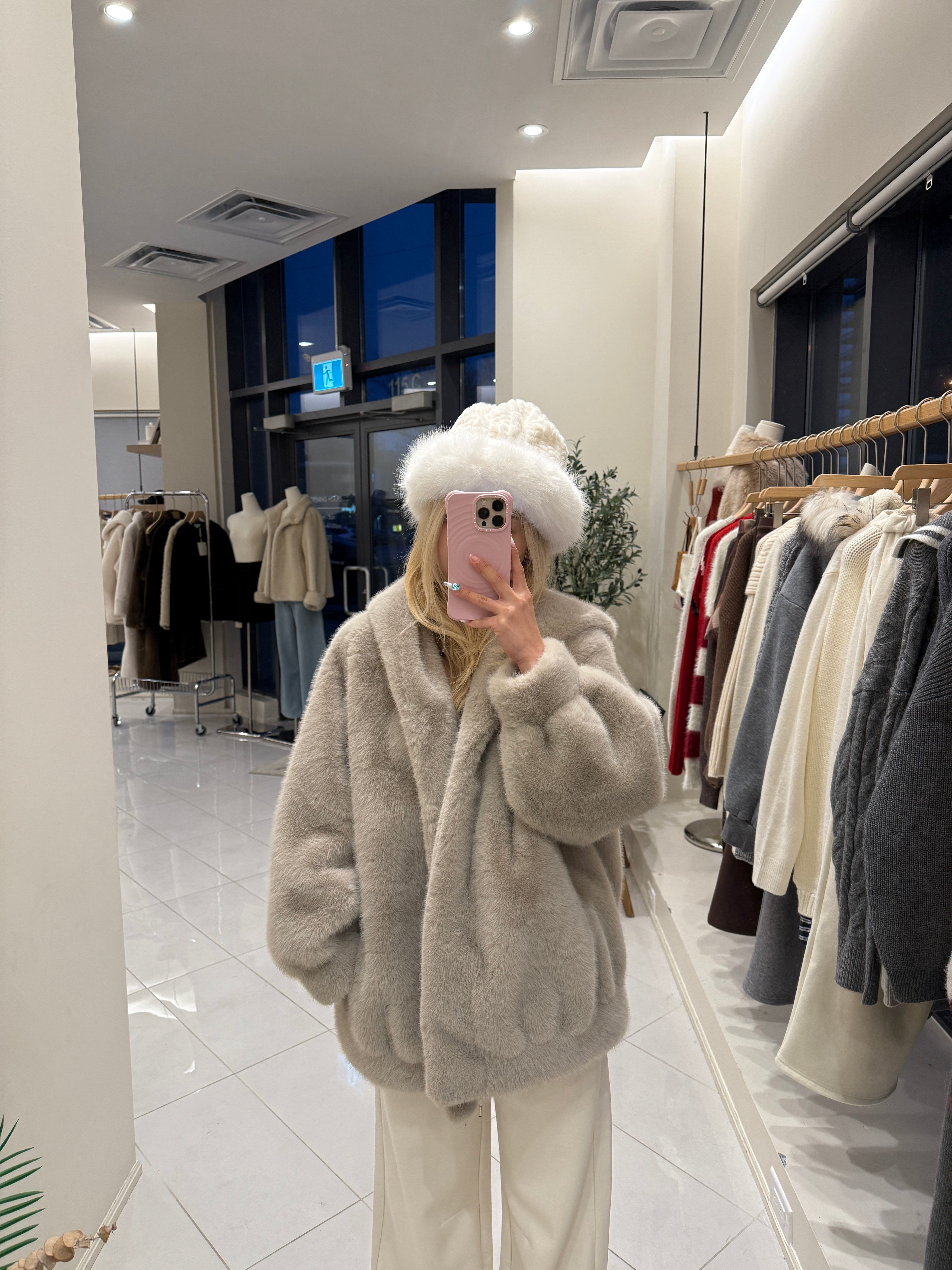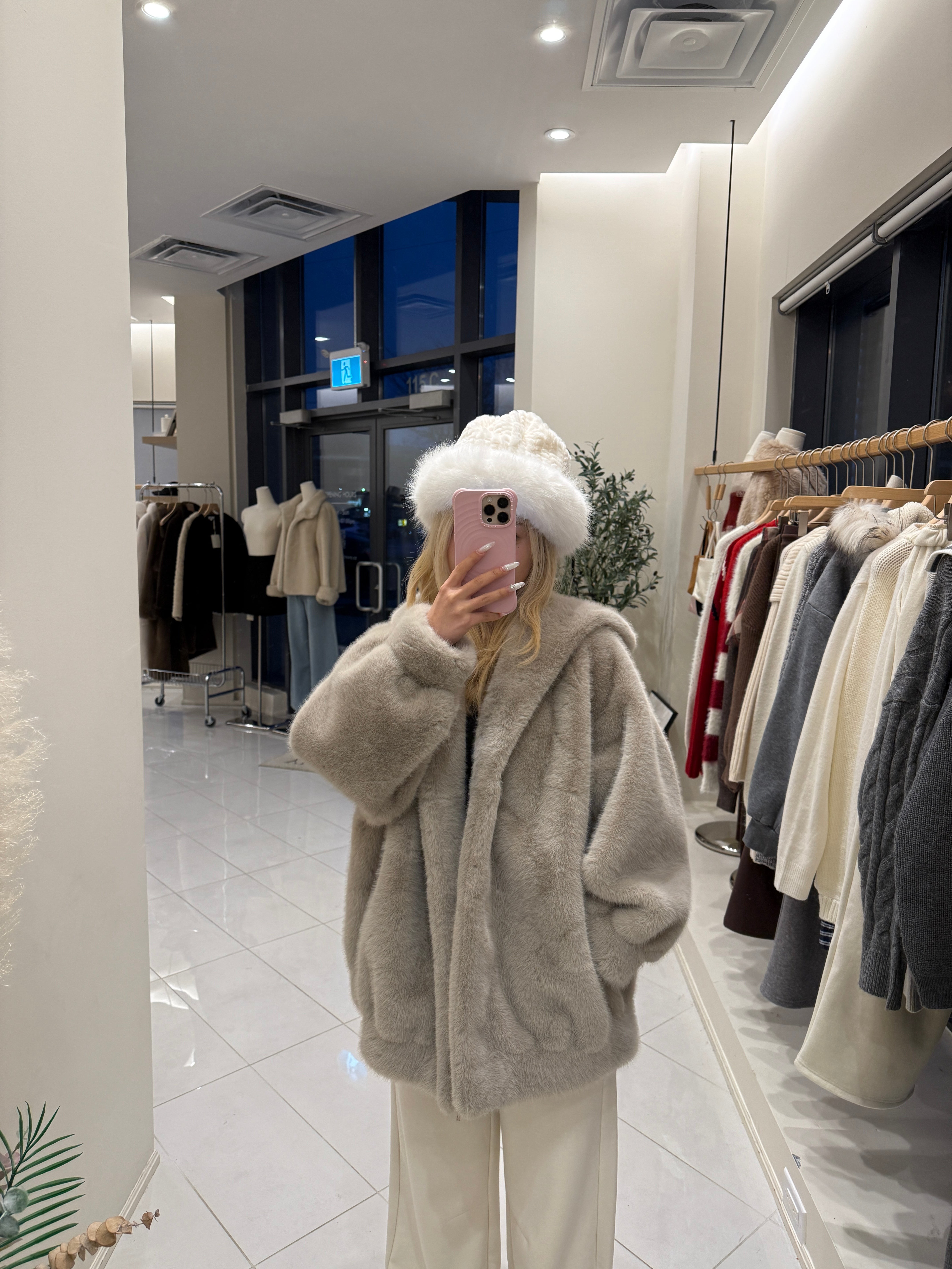 Faux mink fur hoodie jacket