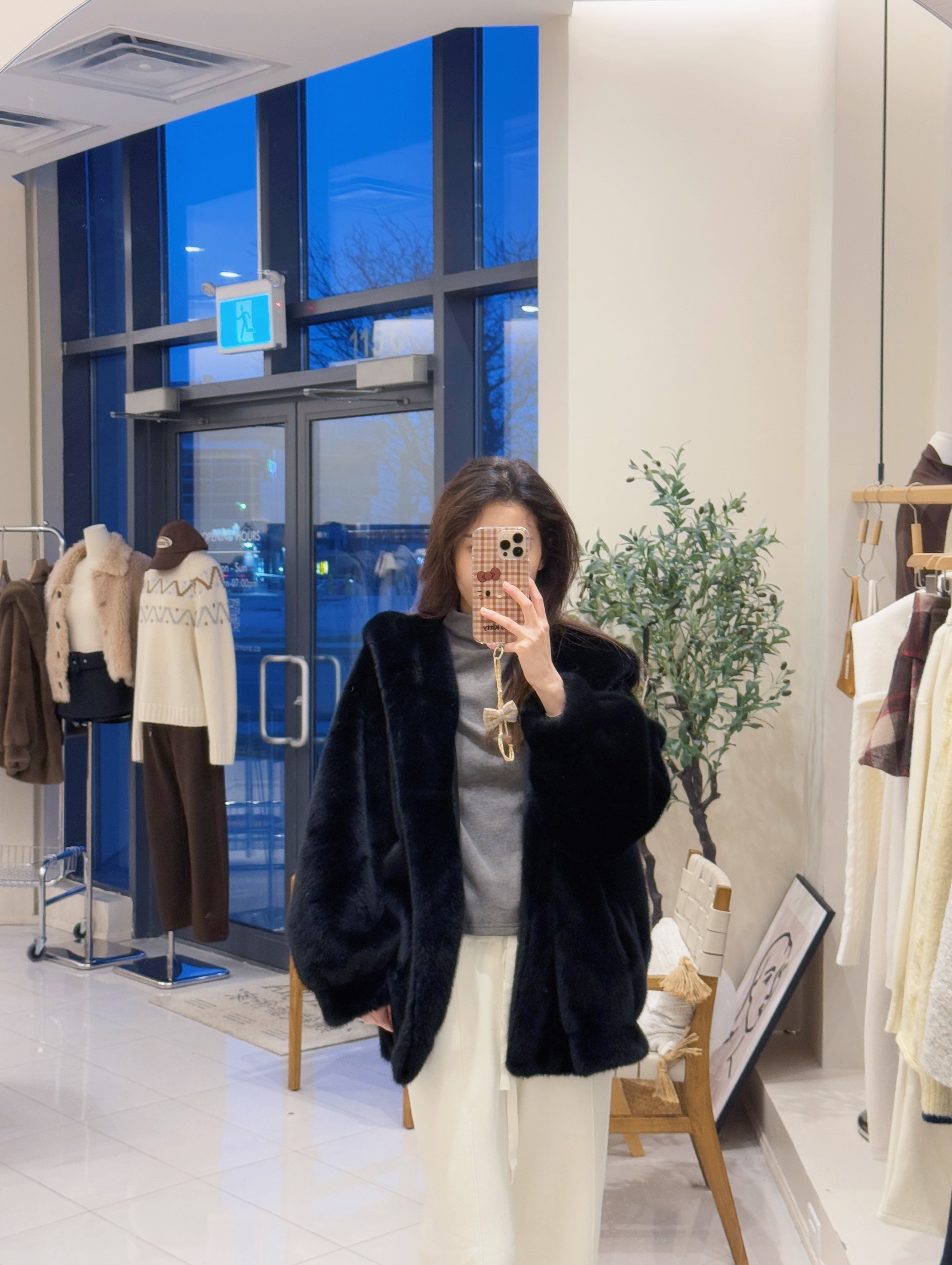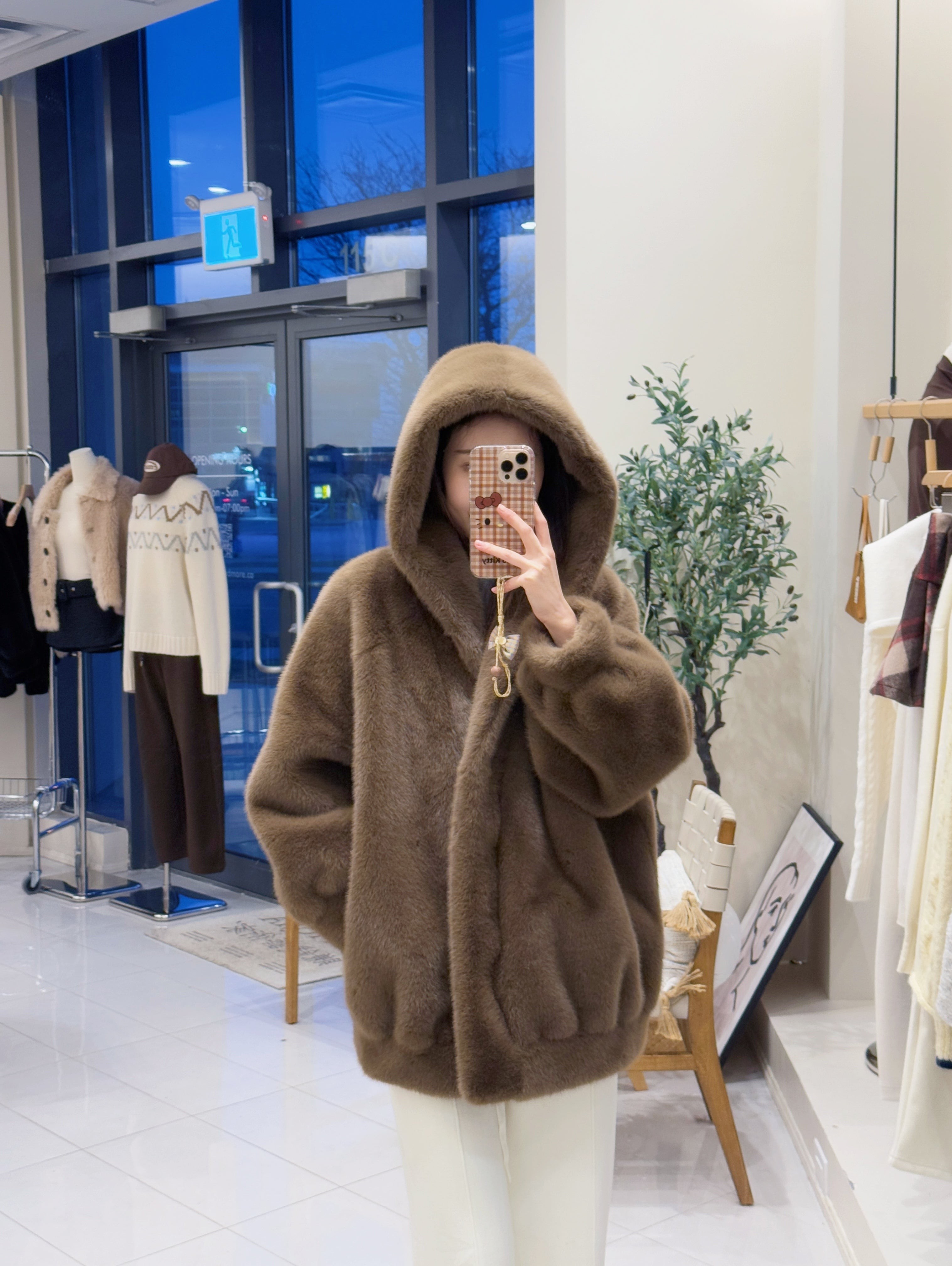 MOMO 仿貂绒连帽拉链外套