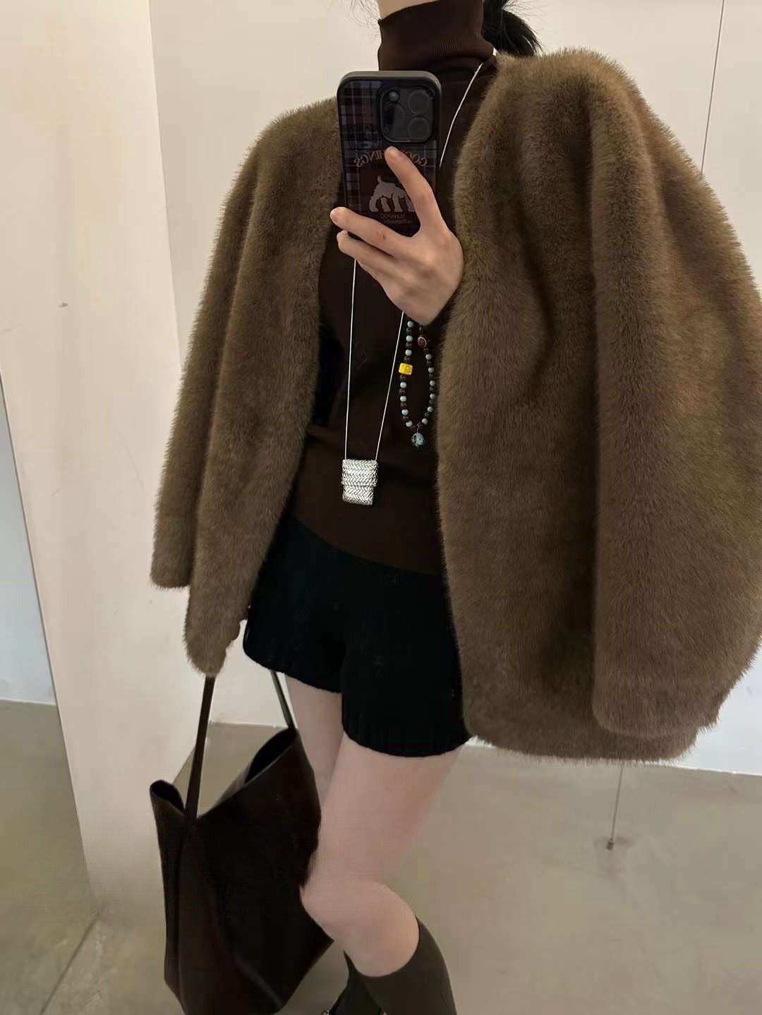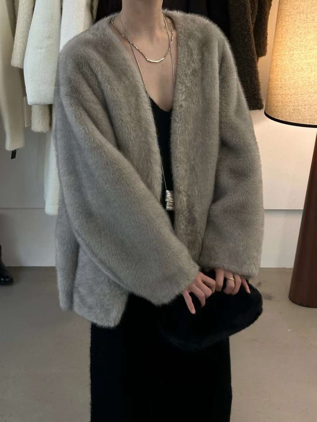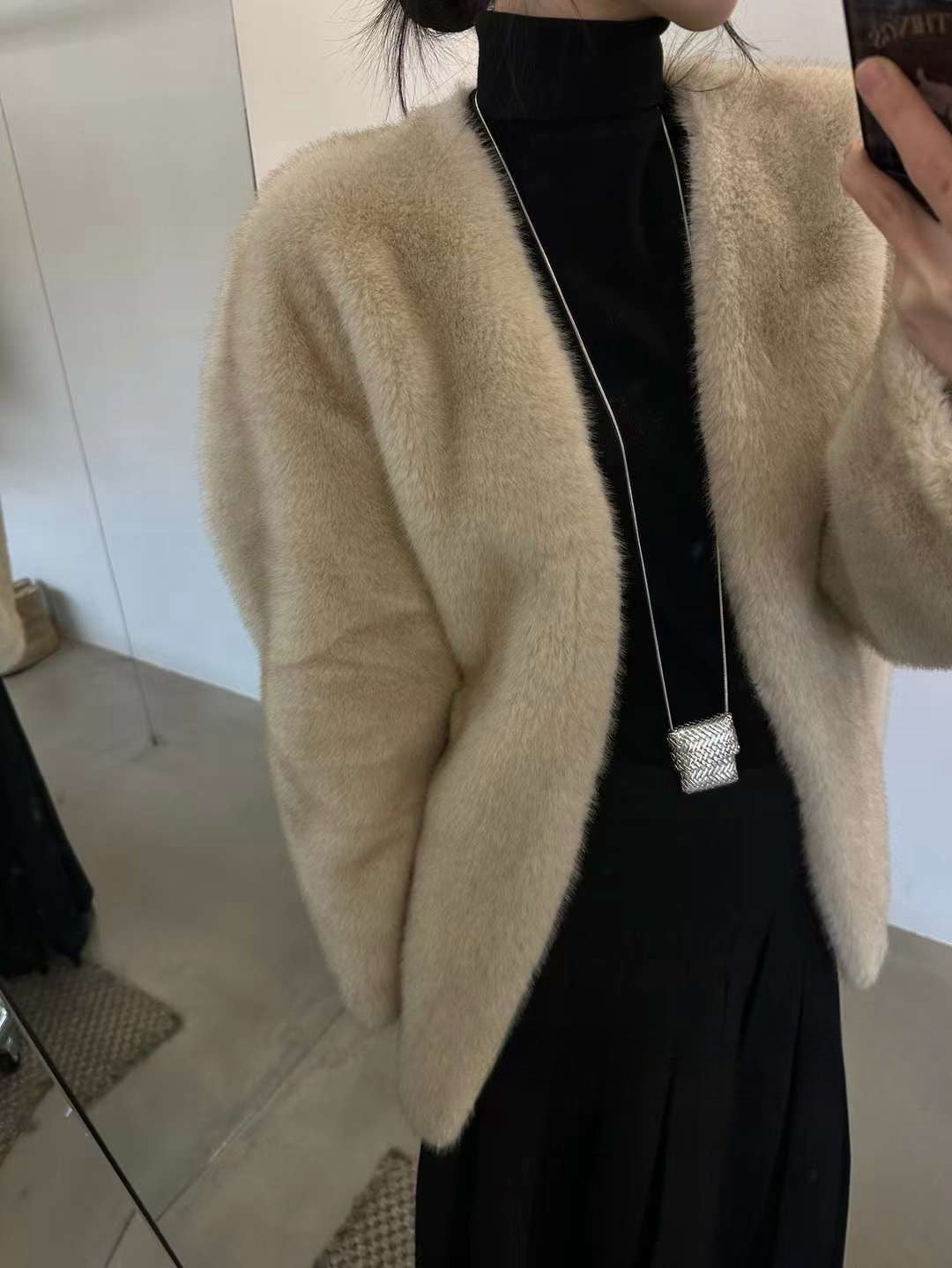 Faux mink fur mid-length jacket