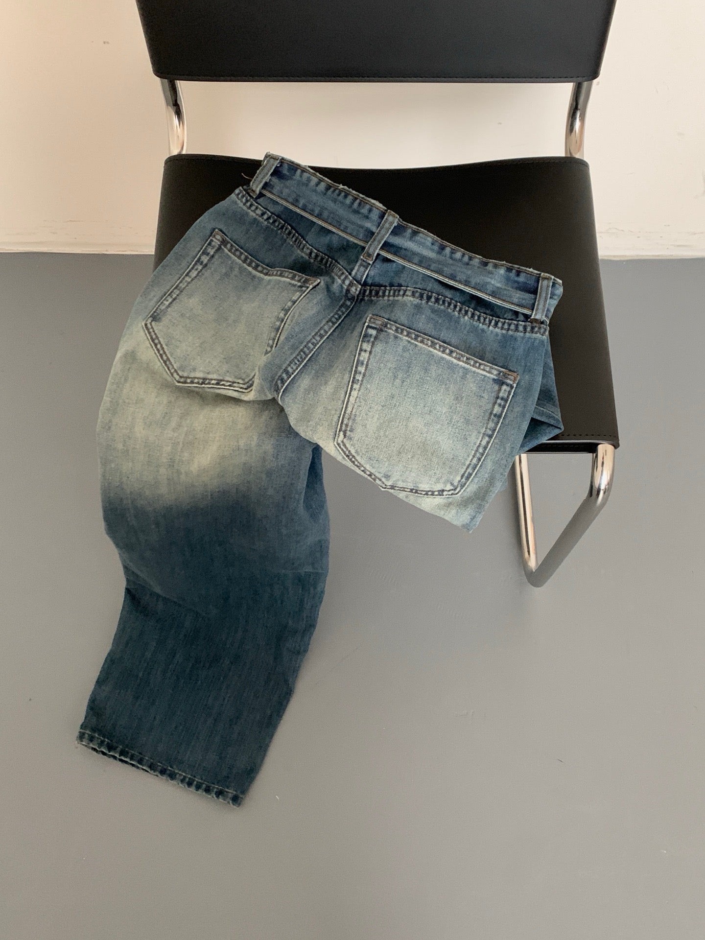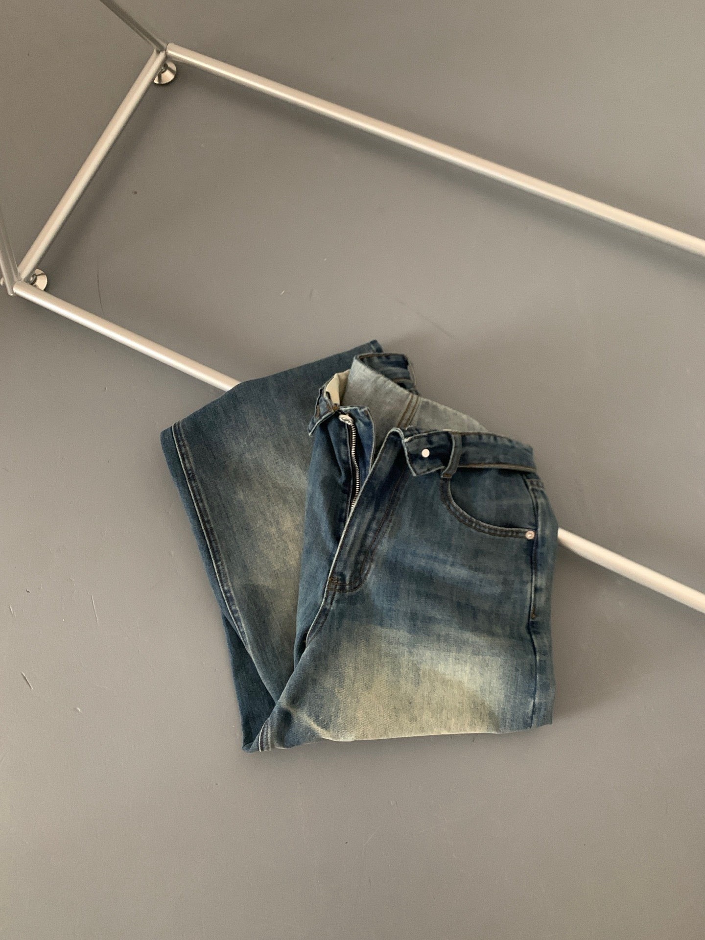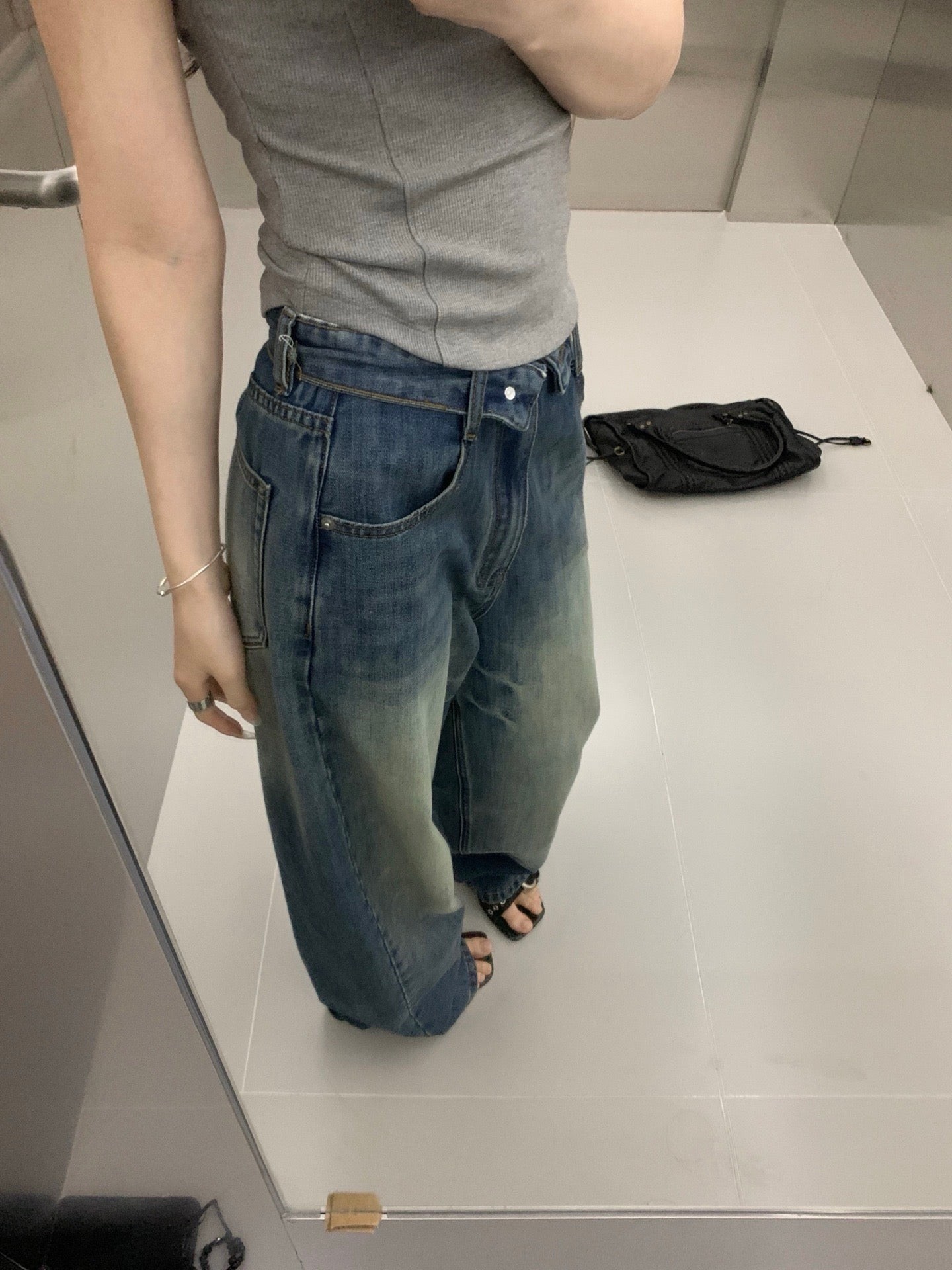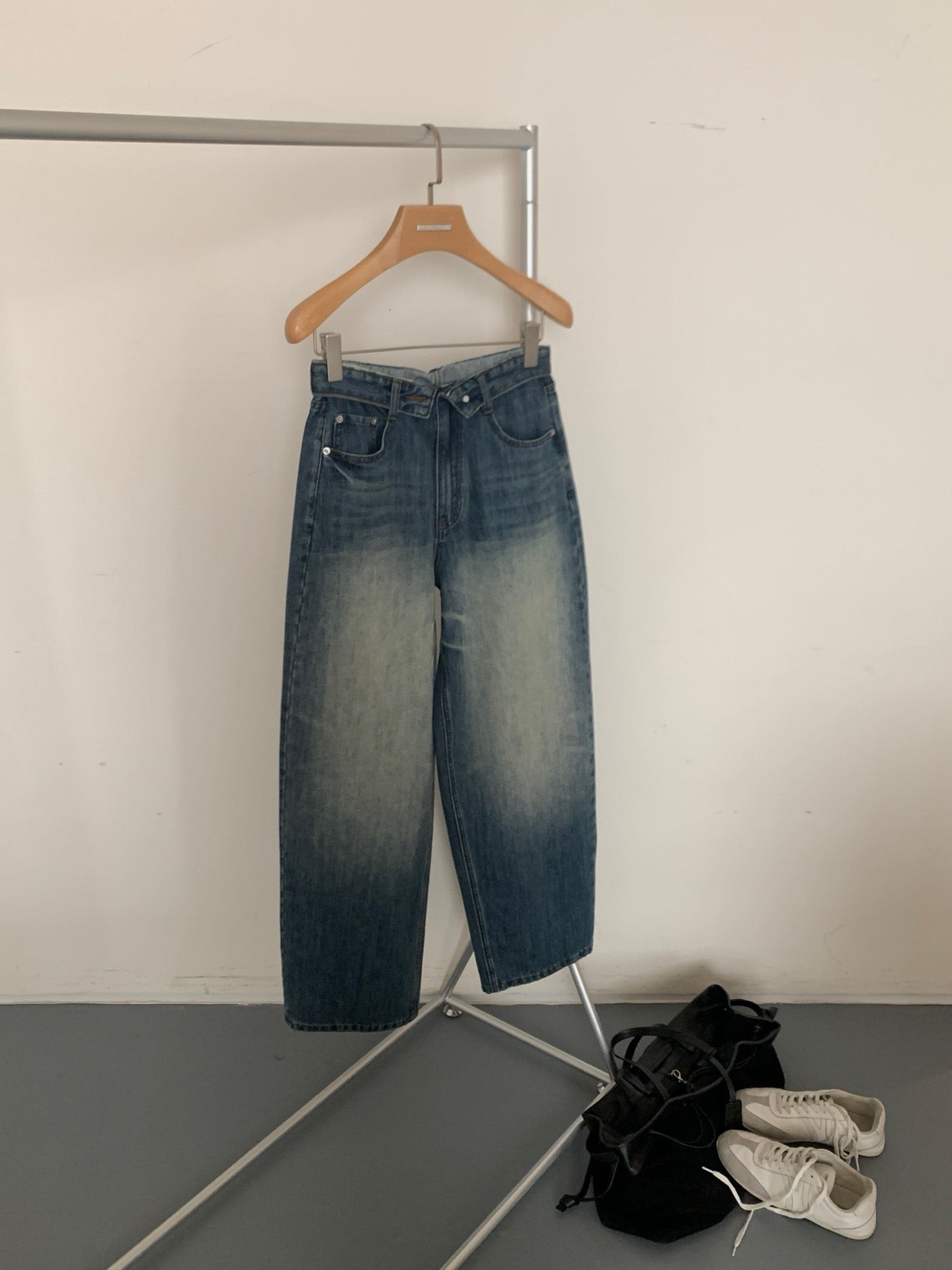 Folded waist washed jeans