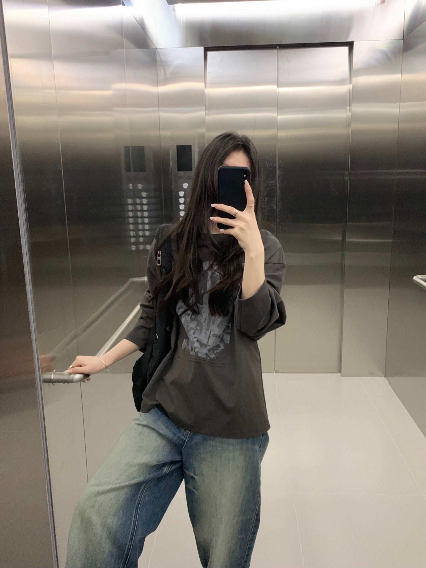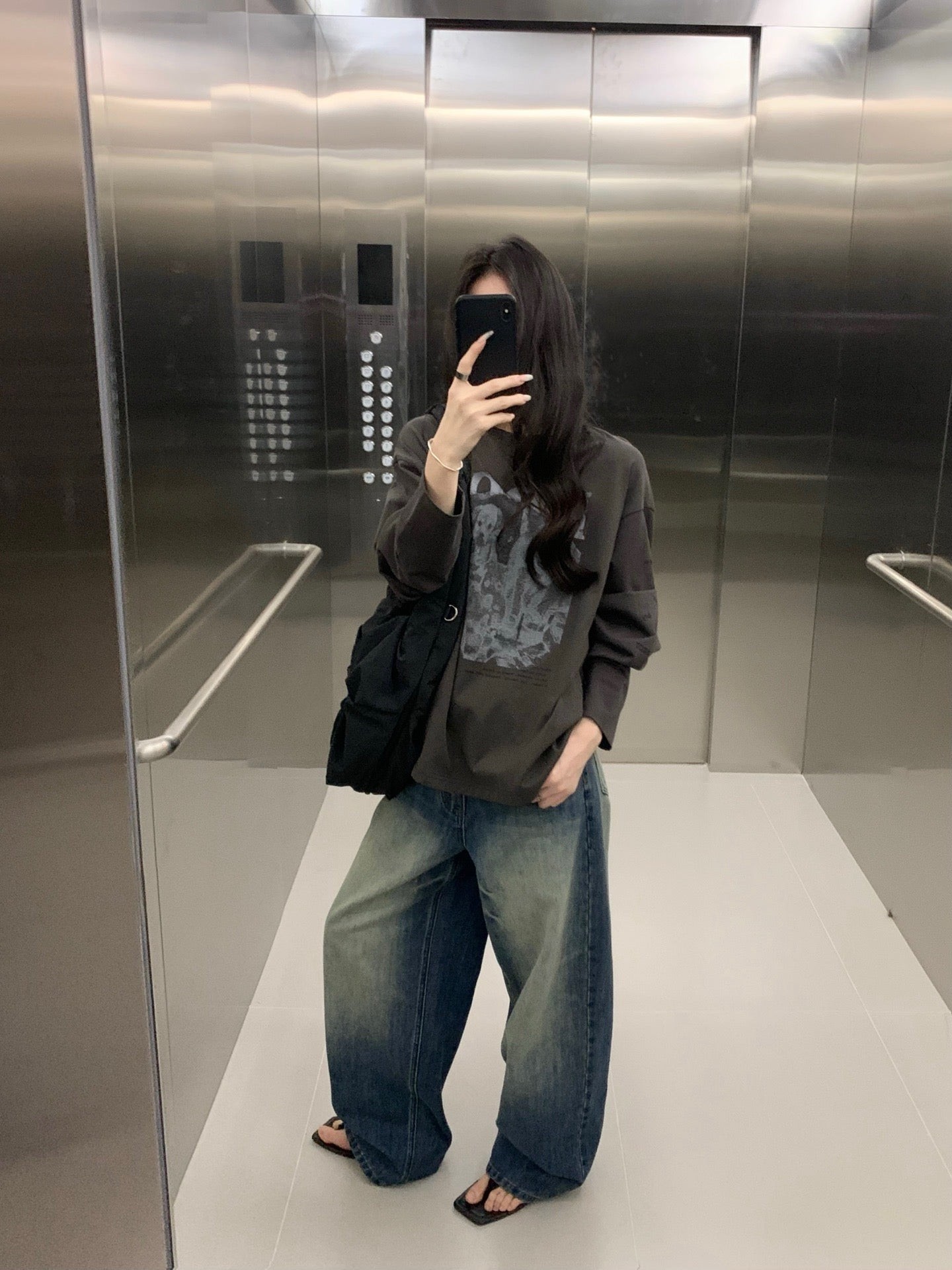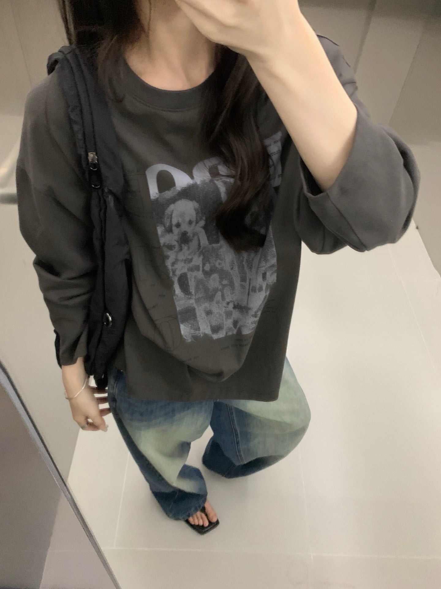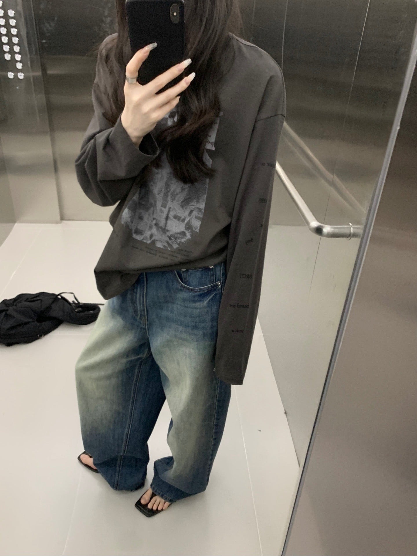 Folded waist washed jeans