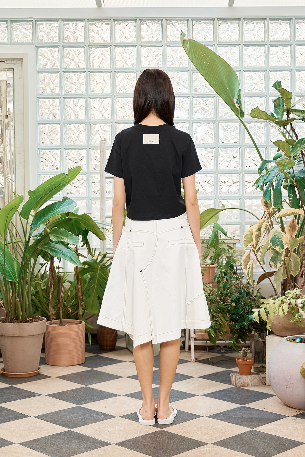 MATIN KIM LOGO THREAD POINT CROP TOP IN BLACK