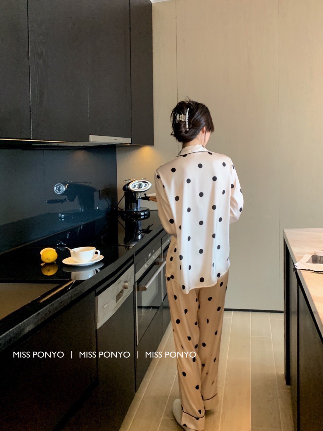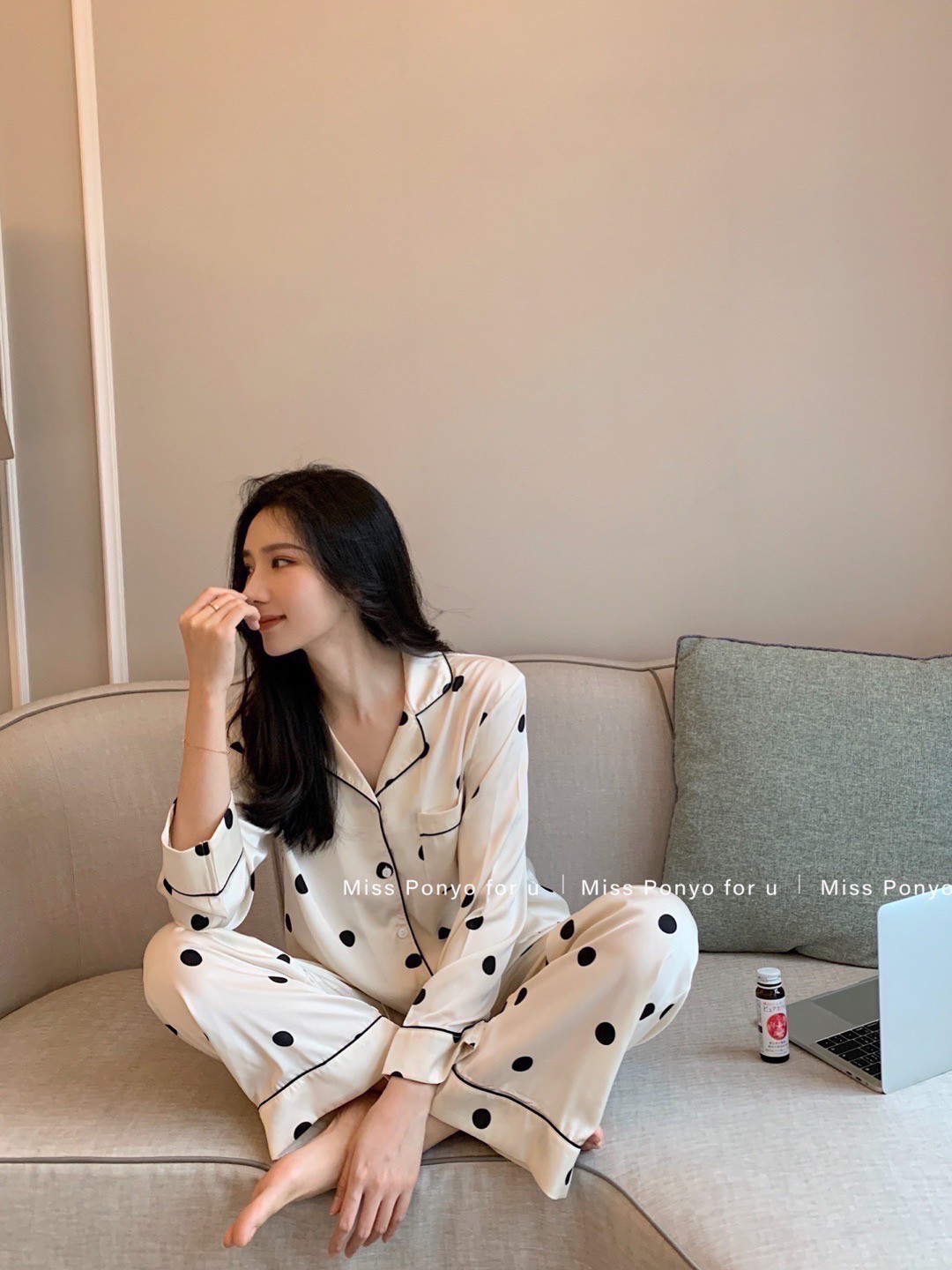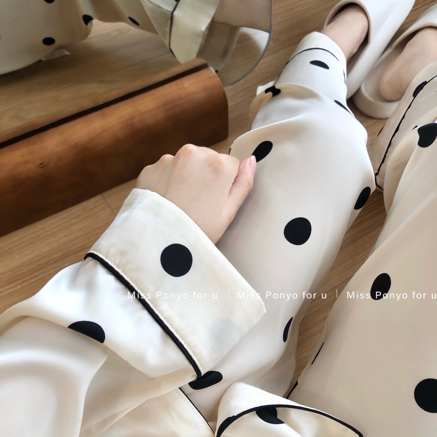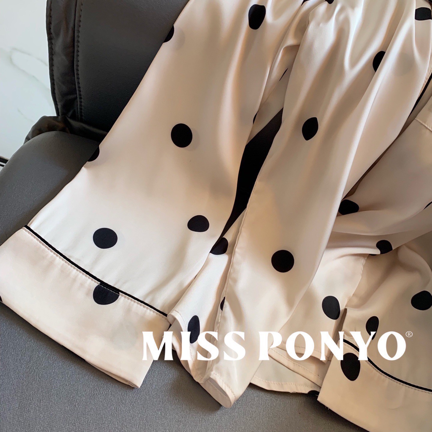 MISS PONYO CHIC系列牛乳啵啵牛仔丝波点长袖长裤女士两件套